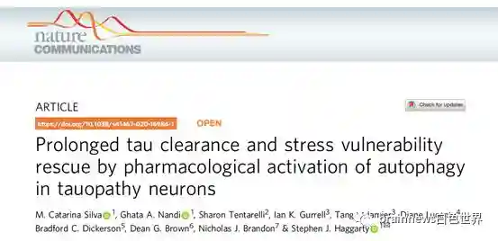 哈佛医学院的Haggarty教授团队对tau病变病人的诱导性多能干细胞(iPSC)诱导形成的神经元细胞进行药理学研究,发现了tau蛋白清除的自噬机制和小分子药物。该研究于2020年6月发表于NatureCommunications,题目为Prolongedtauclearanceandstressvulnerabilityrescuebypharmacologicalactivationofautophagyintauopathyneurons。