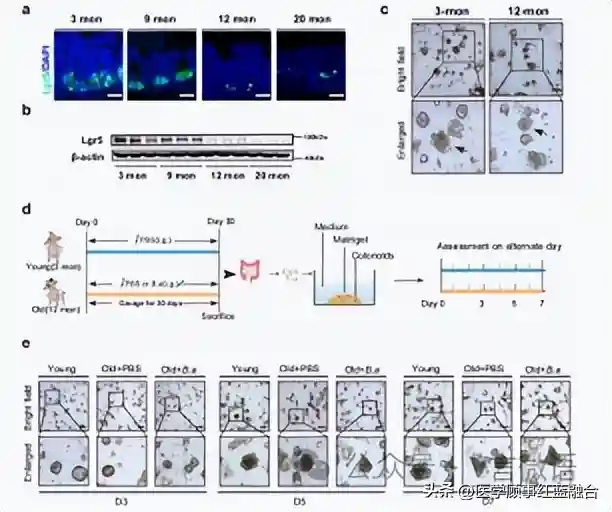 肠上皮是人体内更新最快的组织之一,它使宿主免受各种有害环境因素和病原体的影响。肠道干细胞(ISCs)的再生功能减弱会损害肠上皮的完整性,而肠道衰老伴随着ISCs的功能障碍和衰竭,进一步增加了与年龄相关的肠道疾病的发病率,如慢性便秘、结肠憩室病、营养不良和结直肠癌。作者之前的研究表明青春双歧杆菌是一种共生细菌,在年轻成人的肠道中占主导地位,可以提高多个物种的健康寿命。因此,探索促进ISCs的再生策略可能为改善肠道衰老提供一个光明的前景。