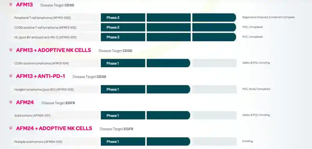 Affimed公司在研管道(节选)