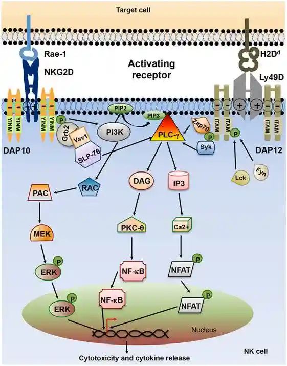 自然杀伤细胞作为免疫系统中抵抗病原体和癌细胞的第一道防线。通过产生细胞因子并介导细胞毒性,且不需要事先致敏,同时与其他免疫细胞相互作用并激活其他免疫细胞发挥功能。