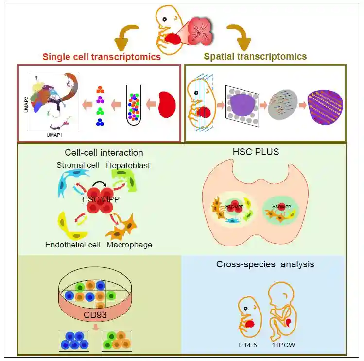 综上所述,该研究首次绘制了小鼠胎肝发育的单细胞时空转录组图谱,鉴定了造血组织功能单元(HSCPLUS),不仅加深了我们对体内造血干细胞扩增方式的理解,扩充了我们对组织功能单元的认识,也为造血干细胞体外扩增提供了更多线索。